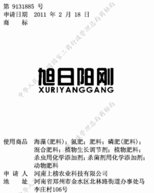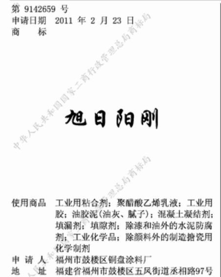 旭日阳刚被注册成“肥料”、“工业用胶”商标